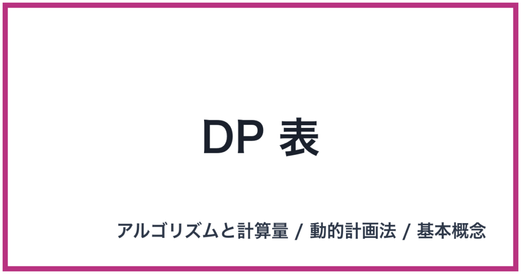 DP 表(DP: ディーピー) 英語表記: DP Table 概要 DP表(ディーピーひょう)とは、アルゴリズムと計算量分野の主要な手法である動的計画法(Dynamic Programming, DP)において、部分問題の解を記録し、再利用するために用いられる表形式のデータ構造のこ... -