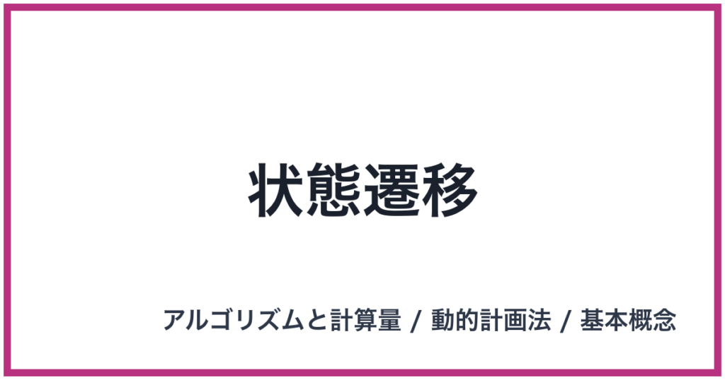 状態遷移 英語表記: State Transition 概要 状態遷移とは、アルゴリズムが問題を解き進める過程において、ある時点の「状態」(部分問題の解)から、次の時点の「状態」へと移行するプロセスを指します。特に、動的計画法(Dynamic Programming, DP)にお... -