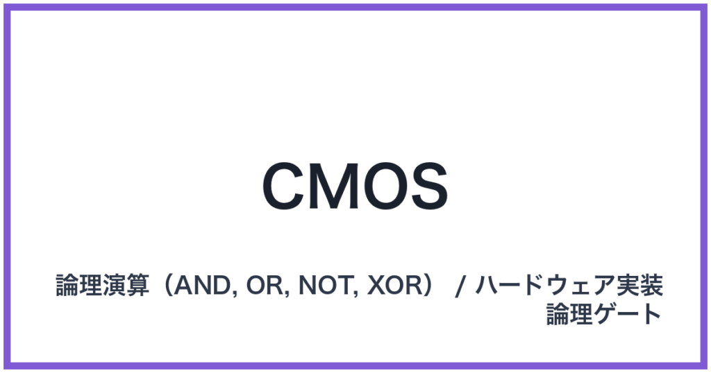 CMOS(CMOS: シーモス) 英語表記: CMOS 概要 CMOS(Complementary Metal-Oxide-Semiconductor:相補型金属酸化膜半導体)は、現代のデジタル回路、特に論理演算(AND, OR, NOT, XOR)をハードウェアとして実現するために不可欠な半導体技術です。これは、... -