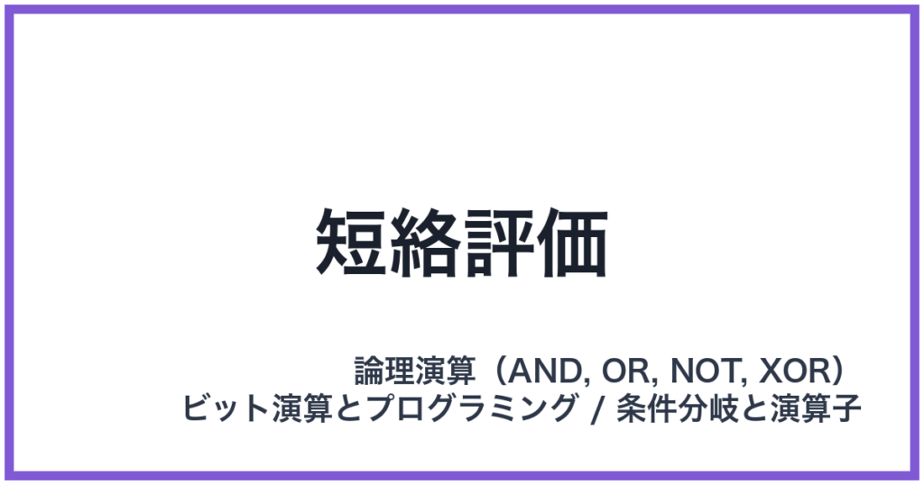 短絡評価 英語表記: Short-circuit Evaluation 概要 短絡評価(Short-circuit Evaluation)とは、プログラミング言語における論理演算子(主にANDやOR)の評価を、式全体の真偽が確定した時点で即座に打ち切る仕組みのことです。この評価方式は、条件分岐...