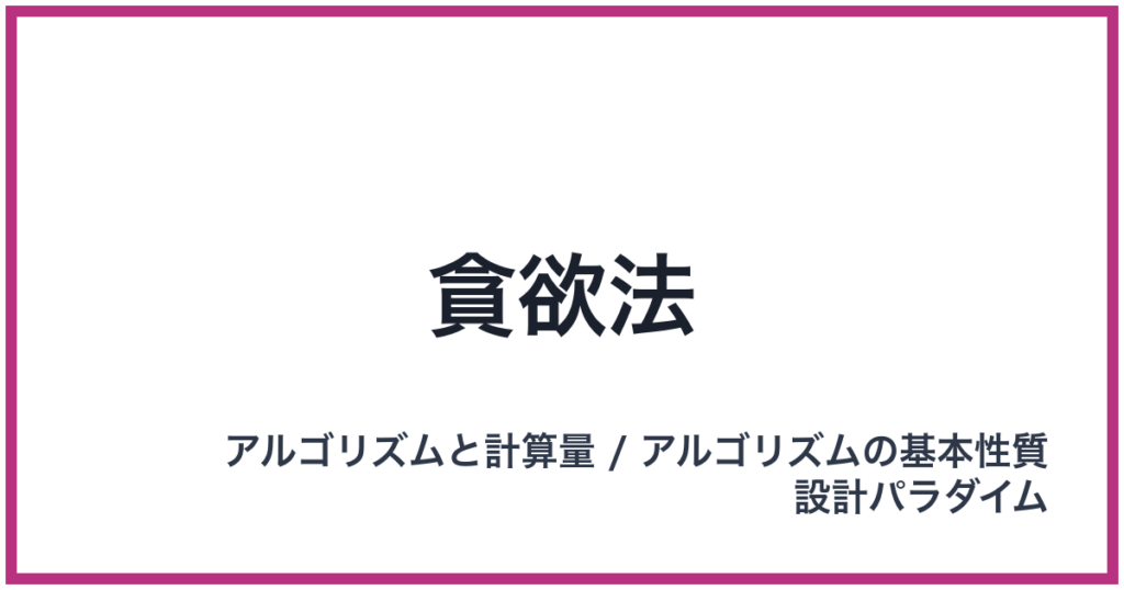 貪欲法 英語表記: Greedy Algorithm 概要 貪欲法(Greedy Algorithm)は、アルゴリズムの設計パラダイムの一つであり、問題を解決する際に、その時点での最善(局所最適)と思われる選択肢を繰り返し選び続ける手法です。これは、各ステップで最も利益の大... -