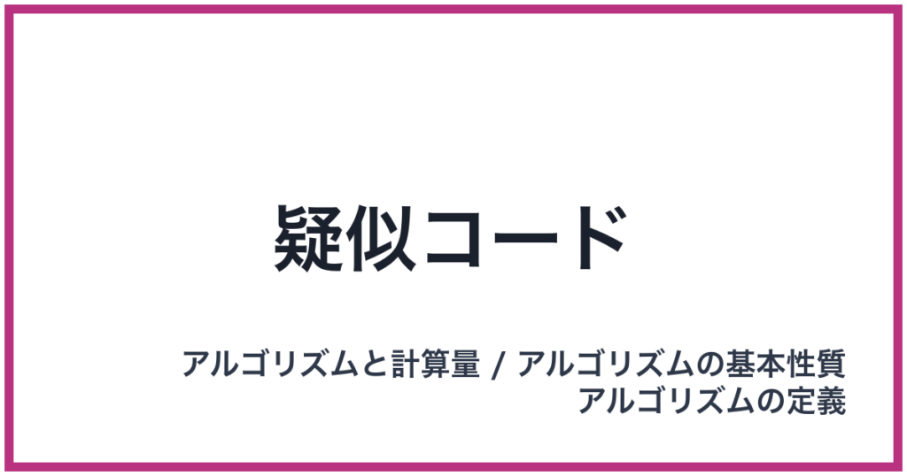 疑似コード 英語表記: Pseudocode 概要 疑似コード(Pseudocode)とは、特定のプログラミング言語の厳密な文法にとらわれず、人間が理解しやすい自然言語に近い形でアルゴリズムの手順を記述するための表記方法です。これは、私たちが「アルゴリズムと計算... -