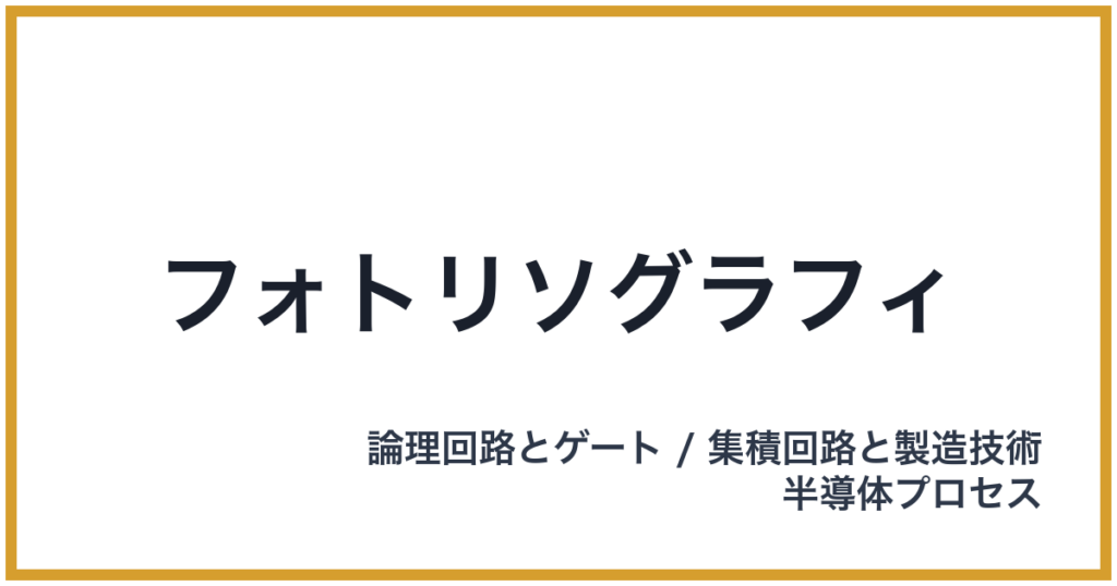 フォトリソグラフィ 英語表記: Photolithography 概要 フォトリソグラフィは、「半導体プロセス」において、集積回路(IC)の核となる微細な「論理回路」パターンをシリコンウェハ上に正確に形成するために不可欠な中核技術です。この技術は、光(Photo)...