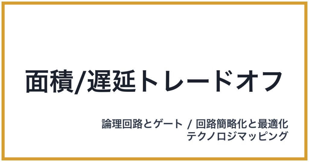 面積/遅延トレードオフ 英語表記: Area/Delay Trade-off 概要 面積/遅延トレードオフとは、デジタル論理回路の設計において、回路の物理的なサイズ(面積)を最小化することと、信号が回路を伝播するのにかかる時間(遅延)を最小化することの間で発生する...