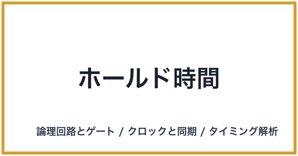 ホールド時間 英語表記: Hold Time 概要 ホールド時間(Hold Time)とは、「論理回路とゲート」を構成するフリップフロップなどの順序回路において、クロック信号のエッジ(立ち上がりまたは立ち下がり)が入力された後も、データ入力信号が安定して保持さ...