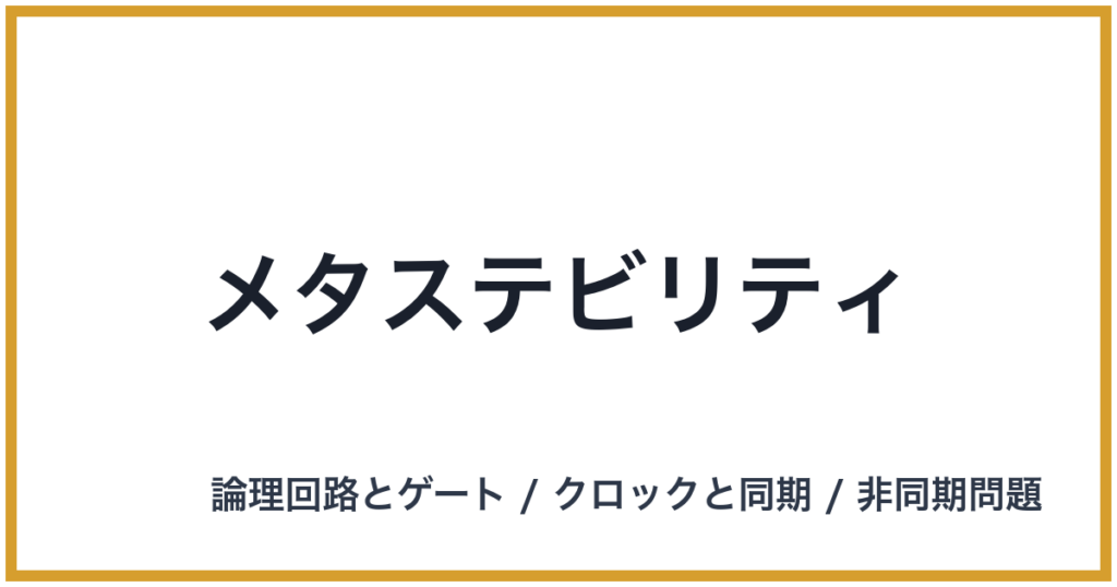 メタステビリティ 英語表記: Metastability 概要 メタステビリティ(Metastability、準安定状態)とは、デジタル論理回路、特にフリップフロップのような同期要素が、非同期な入力信号を受け取った際に陥る、一時的に不安定な状態のことです。これは、回路... -