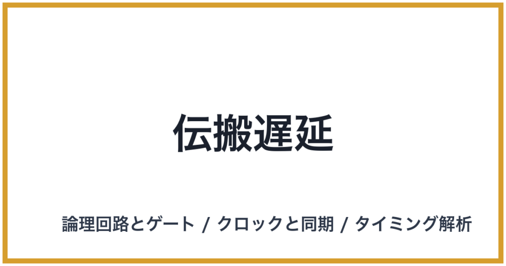 伝搬遅延 英語表記: Propagation Delay 概要 伝搬遅延(Propagation Delay)とは、デジタル回路を構成する論理ゲートやフリップフロップにおいて、入力信号が変化してから、その変化が原因となって出力信号が安定するまでに要する時間のことを指します。こ... -