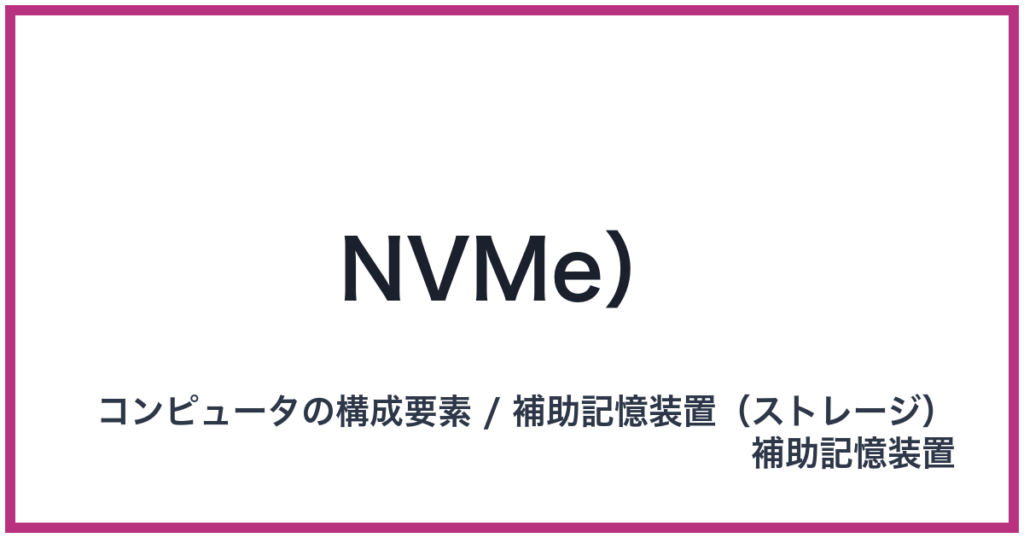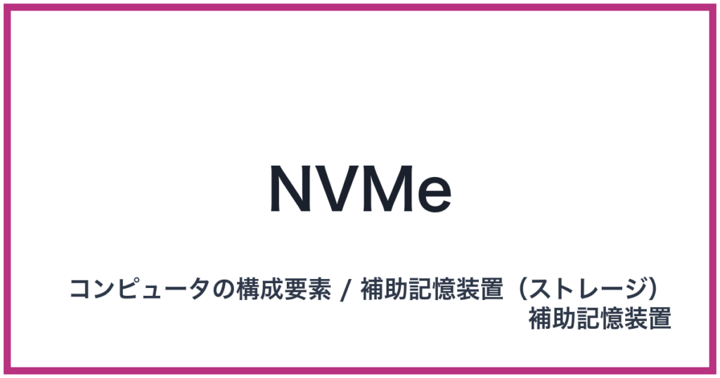 NVMe(エヌブイエムイー) 英語表記: Non-Volatile Memory Express 概要 NVMe(Non-Volatile Memory Express)は、主にSSD(Solid State Drive)などの不揮発性メモリを搭載した補助記憶装置のために開発された、超高速なデータ転送プロトコルおよびインタ... -