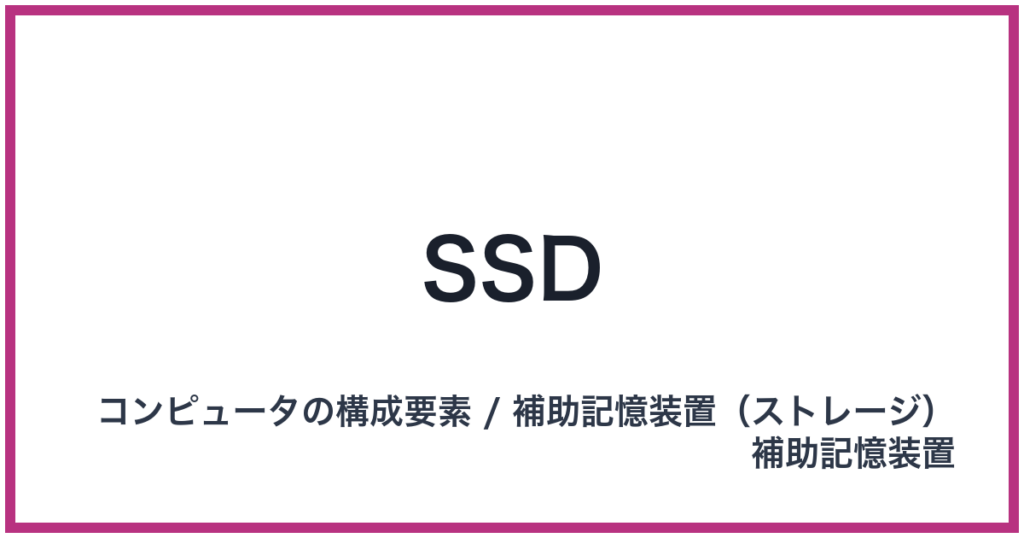 SSD(エスエスディー) 英語表記: Solid State Drive 概要 SSD(エスエスディー)は、コンピュータの構成要素の中でも、データを永続的に保存する「補助記憶装置」に分類されるデバイスです。従来のハードディスクドライブ(HDD)が磁気ディスクと機械的な... -