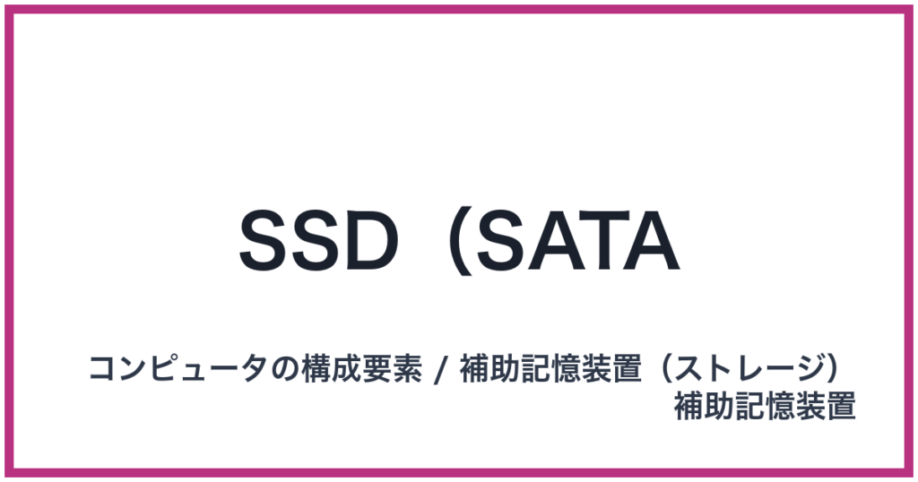 ``` SSD(SATA 英語表記: SSD (SATA 概要 SSD(SATA)は、「コンピュータの構成要素」における「補助記憶装置(ストレージ)」の一種であり、NAND型フラッシュメモリを使用してデータを電気的に記憶する高速な記憶デバイスです。従来のHDD(ハードディスク... -
