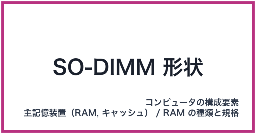 SO-DIMM 形状 英語表記: SO-DIMM Form Factor 概要 SO-DIMM 形状(SO-DIMM Form Factor)とは、主記憶装置であるRAMモジュールの一種で、主にノートパソコンや小型の組み込みシステムに採用される、標準的なDIMM(Dual In-line Memory Module)よりも大幅... -