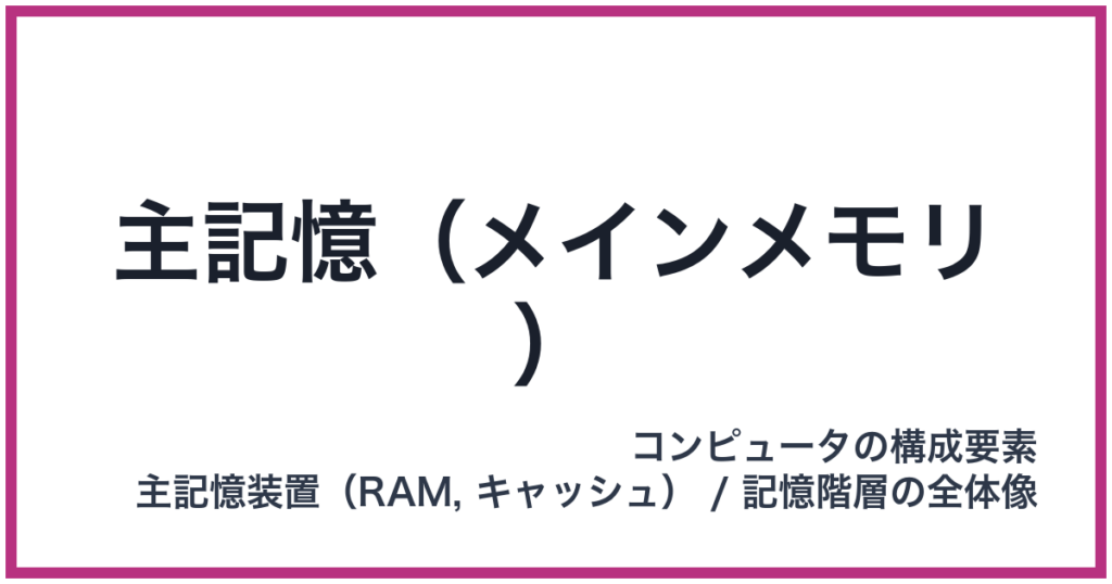 主記憶(メインメモリ)(シュキオク) 英語表記: Main Memory (RAM) 概要 主記憶(メインメモリ)は、コンピュータの心臓部であるCPUが、現在実行中のプログラムや処理対象のデータを一時的に保持するために利用する、高速な記憶装置です。私たちが普段パ... -