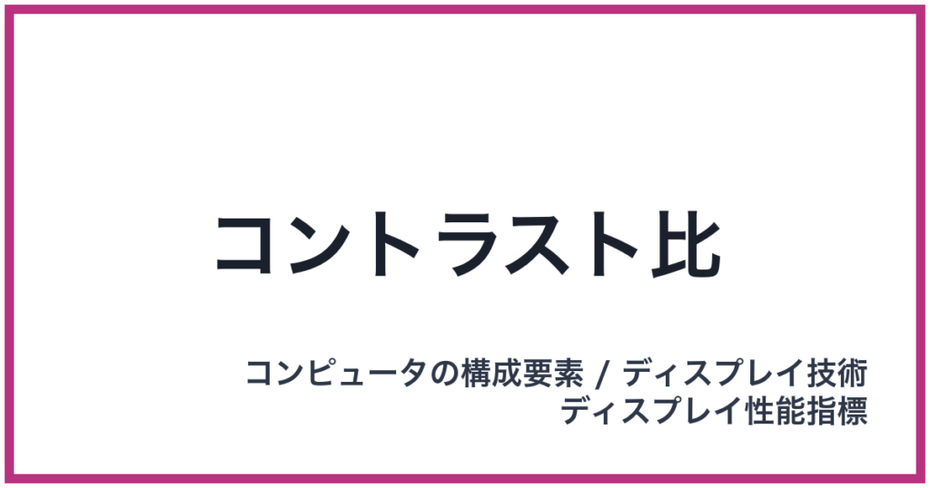 コントラスト比 英語表記: Contrast Ratio 概要 コントラスト比(Contrast Ratio)とは、ディスプレイ技術において、画面が表現できる最も明るい部分(白)の輝度と、最も暗い部分(黒)の輝度の比率を示す性能指標のことです。これは、コンピュータの構成... -