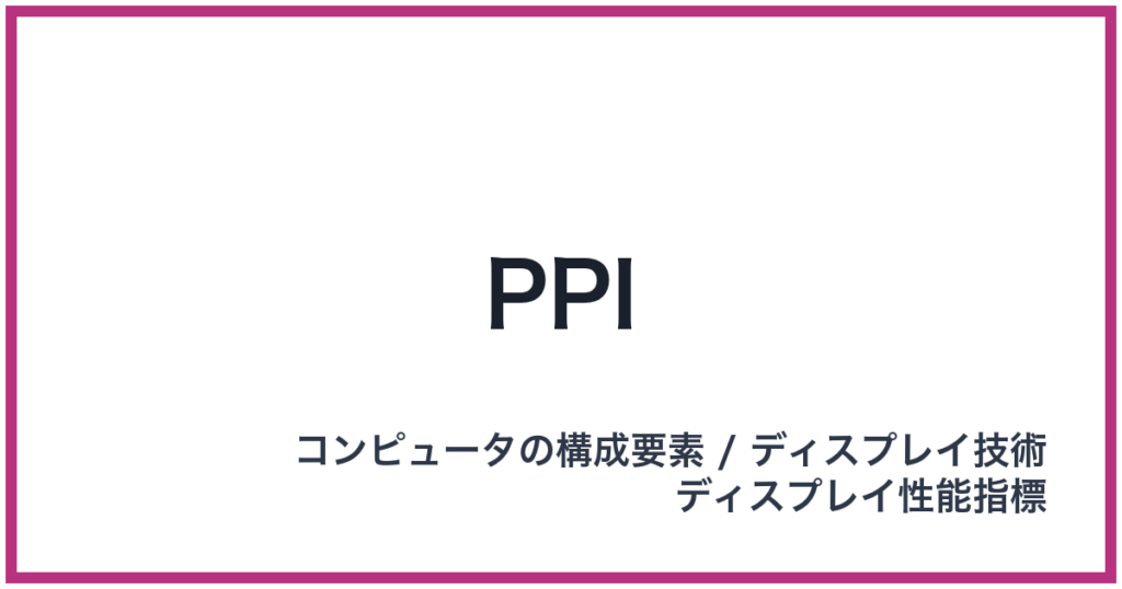 PPI(PPI: ピーピーアイ) 英語表記: PPI (Pixels Per Inch) 概要 PPI(ピーピーアイ)は、コンピュータの構成要素を理解する上で欠かせないディスプレイ技術における重要なディスプレイ性能指標の一つです。これは、ディスプレイの物理的な1インチ(約2.5... -