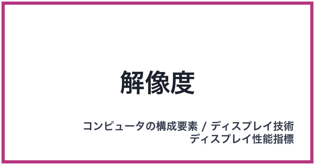 解像度(PPI: ピーピーアイ) 英語表記: Resolution 概要 解像度とは、ディスプレイが表示できる画素(ピクセル)の総数、または単位面積あたりの画素の密度を示す「ディスプレイ性能指標」の最重要項目です。これは「コンピュータの構成要素」であるディ... -